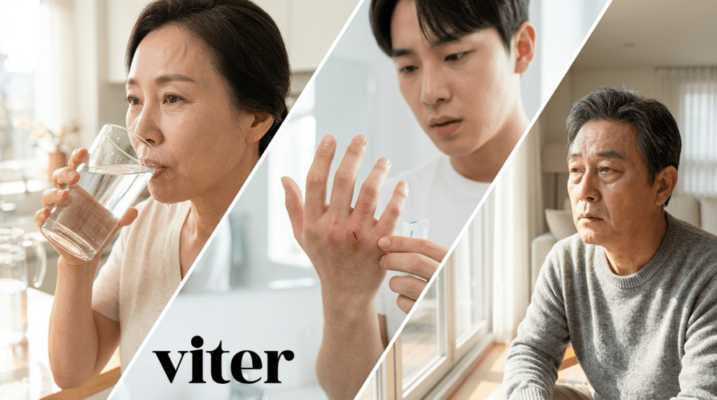 ✔️ 다갈(多渴): 평소보다 갈증이 자주, 심하게 느껴집니다.